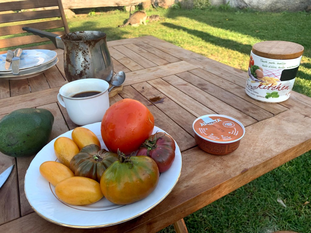 - Kumato (2021) – uzeo na Trešnjevačkom jesenas par komada kod onog gospona iz Rastoka koji zna imati zanimljive robe pa sačuvao sjeme. Kumato je dehibridizirani hibrid koji bi se u teoriji trebao moći iznova uzgojiti iz sjemena (za razliku od hibrida gdje u pravilu ne znate što ćete dobiti iz njegovog sjemena). Inače riječ je o Španjolcu (pokrajina Almeria) boje mahagonija koji i u samoposluzi ima nekog okusa. Navodno dugo može stajati nakon branja na sobnoj temperaturi, tjednima. Trebao bi uspjevati i u uvjetima s malo vode.