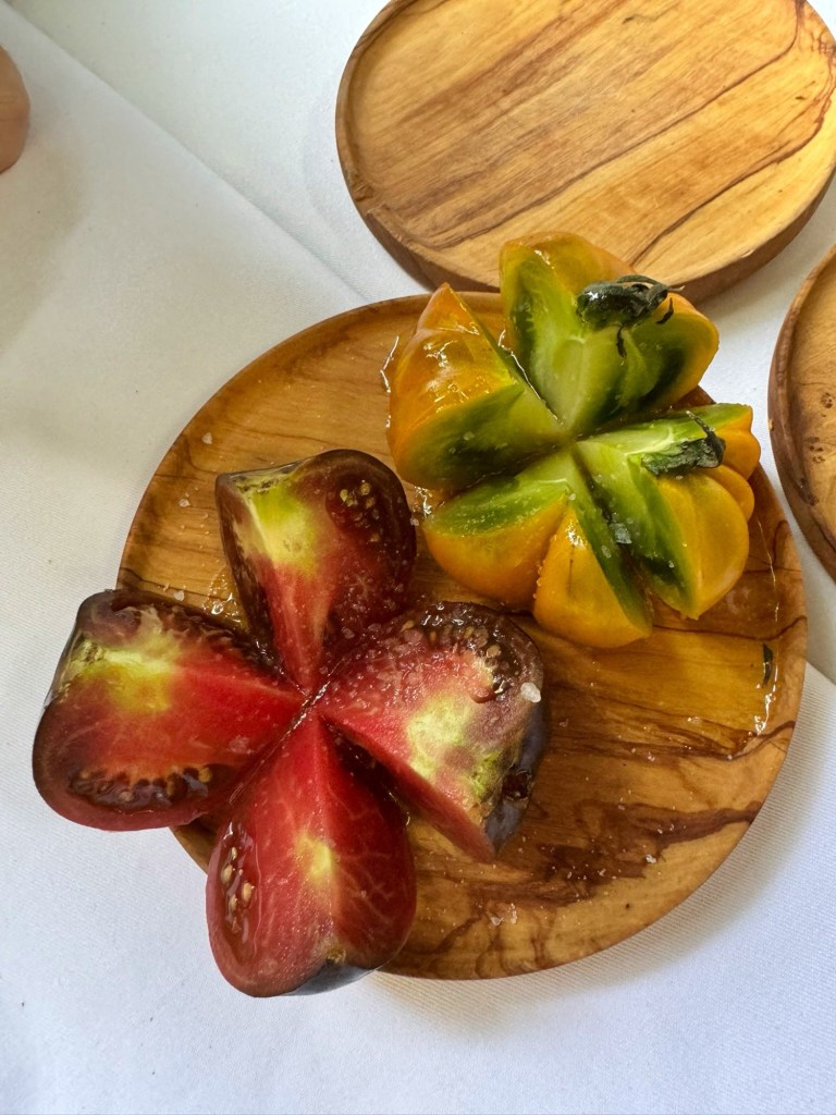 Ako paradajz promatrate kao glavno jelo onda uz njega najbolje upariti neki lagani prilog, mozzarella je tu logičan izbor. Ili neku nježnu riblju paštetu (losos ili bakalar) uz sourdough kruh, meni omiljen pristup kad radim tejsting paradajza u vrtu na brdu na Medvednici jer je pašteta puno jednostavnija za poslužiti od rezanja sireva. Ovisno o pristupu, intenzivnije sorte paradajza sjajno se slažu i s aromatičnim guščjim paštetama. Paradajz i pašteta je taj nostalgični par koji nam je svima u nekom ugodnom sjećanju od davnina.